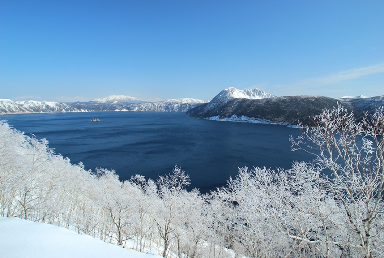 【摩周湖】周長20公里的神秘火山湖,海拔351公尺,水質透明度為世界罕見的火口湖,因霧氣多而顯得寧靜神祕。湖的中央有座東西105公尺、南北50公尺、高23公尺的神之島,像極了可愛的小酒窩。東邊看到粗曠聳立的摩周岳,湖面倒映著它的山影。