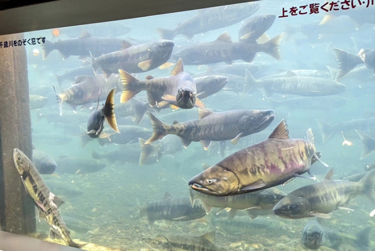 【千歲水族館】擁有北海道大型的巨大淡水水槽的水族館。展示從棲息在千歲川的鮭魚開始,到世界各地淡水水域中的生物約1萬隻,以簡明易懂的方式來介紹淡水魚生態。最值得一看的就是日本首見的「水中觀察區」,能透過玻璃直接觀察真實的河川(千歲川)。