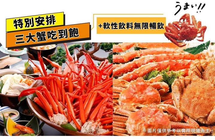 晚餐:三大蟹吃到飽+軟性飲料無限暢飲